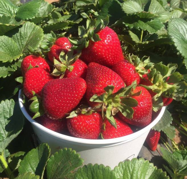 U-Pick strawberries are a fun outdoor activity for children and adults, plus you are rewarded with a bucket of sweet berries.