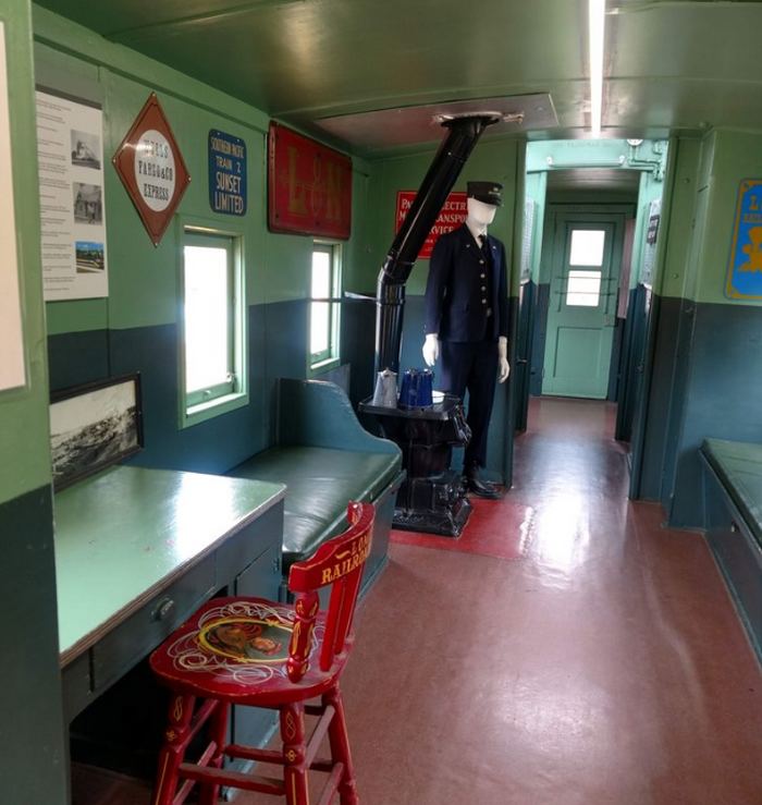 - Southern Pacific Box Car (1913): This outside-braced wooden freight car is representative of early 20th-century shipping practices.